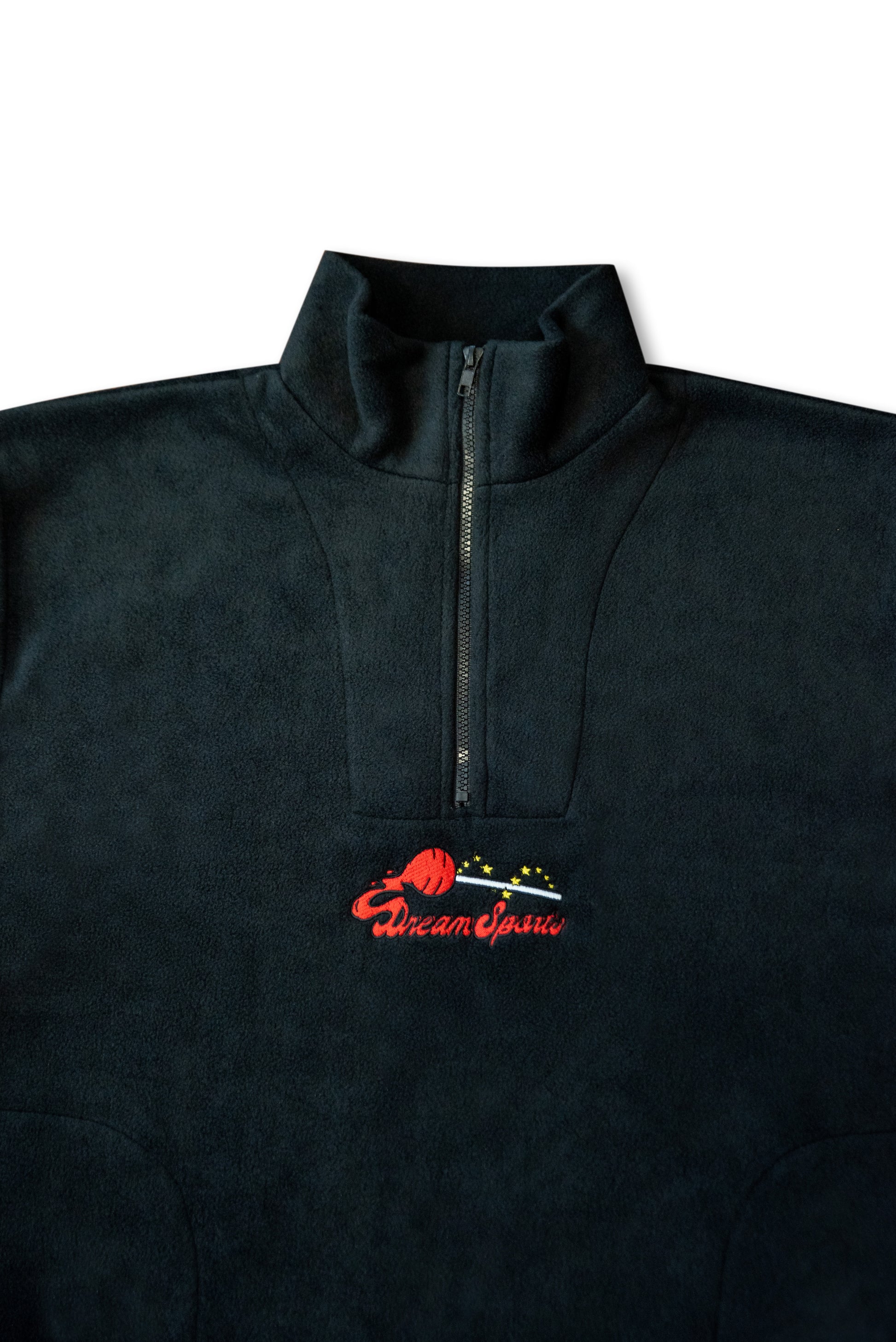 1/4 Zip Fleece in Black with Lollipop Embroidery
