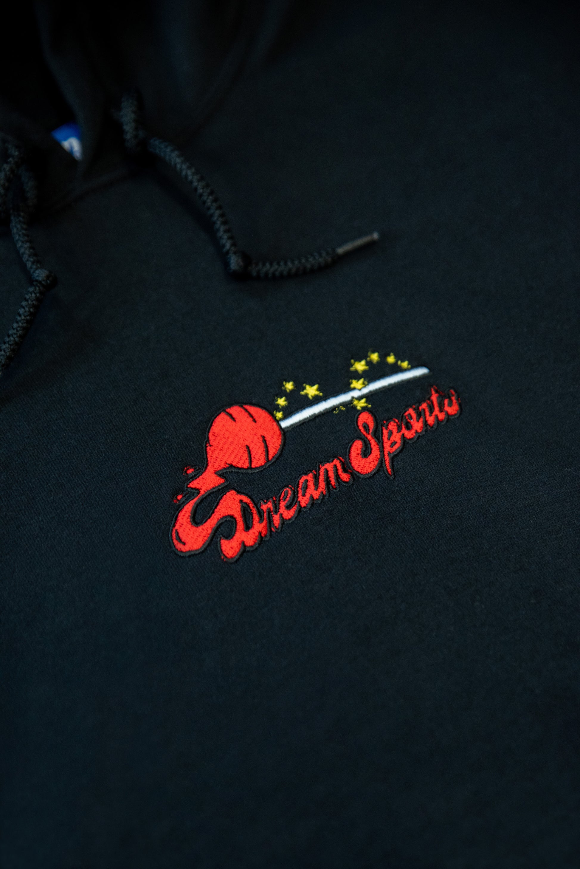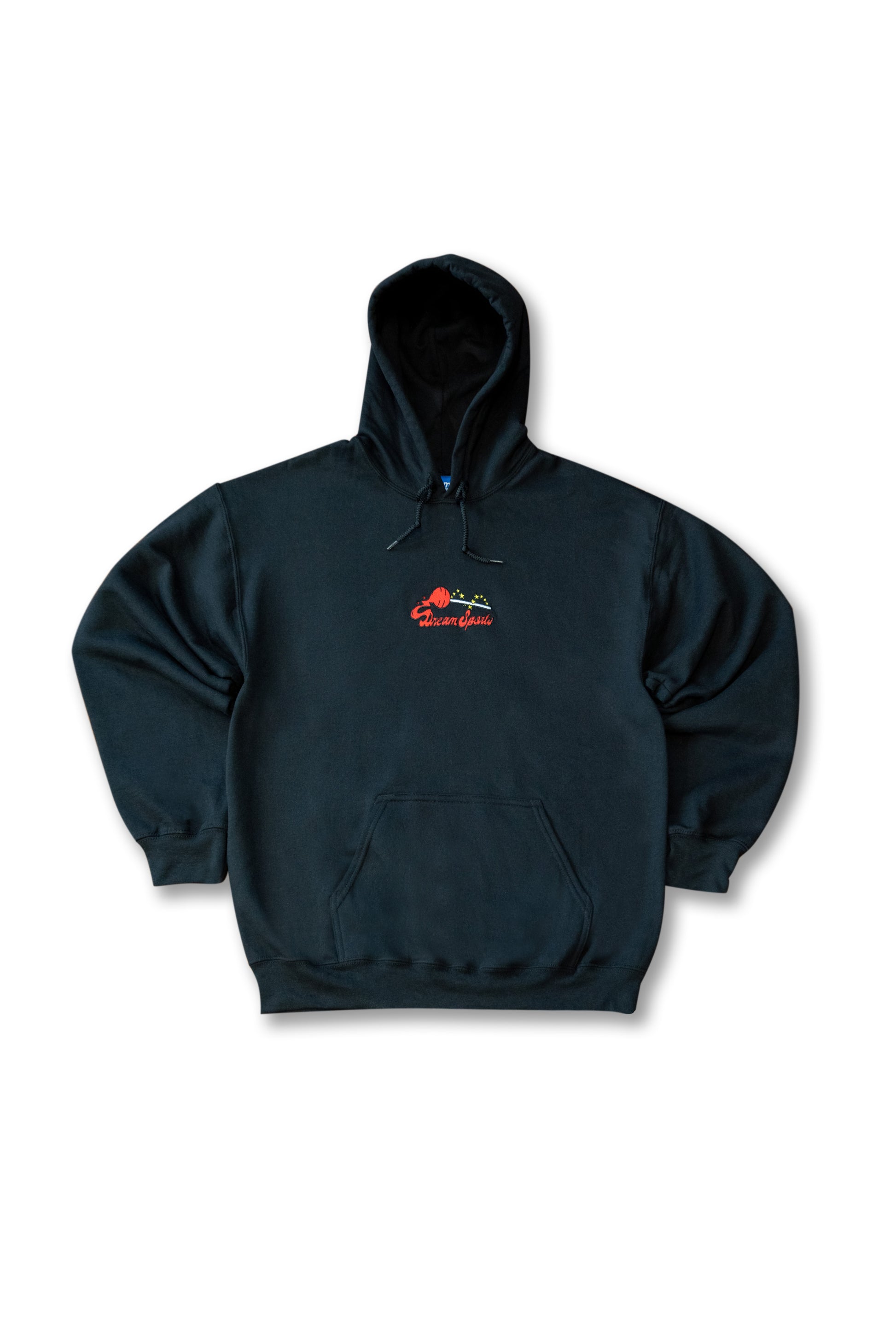 A black hoodie finished with playful lollipop embroidery on the chest. Made to order in England from a soft cotton blend with a cosy inside - built for comfort, easy to throw on any day.