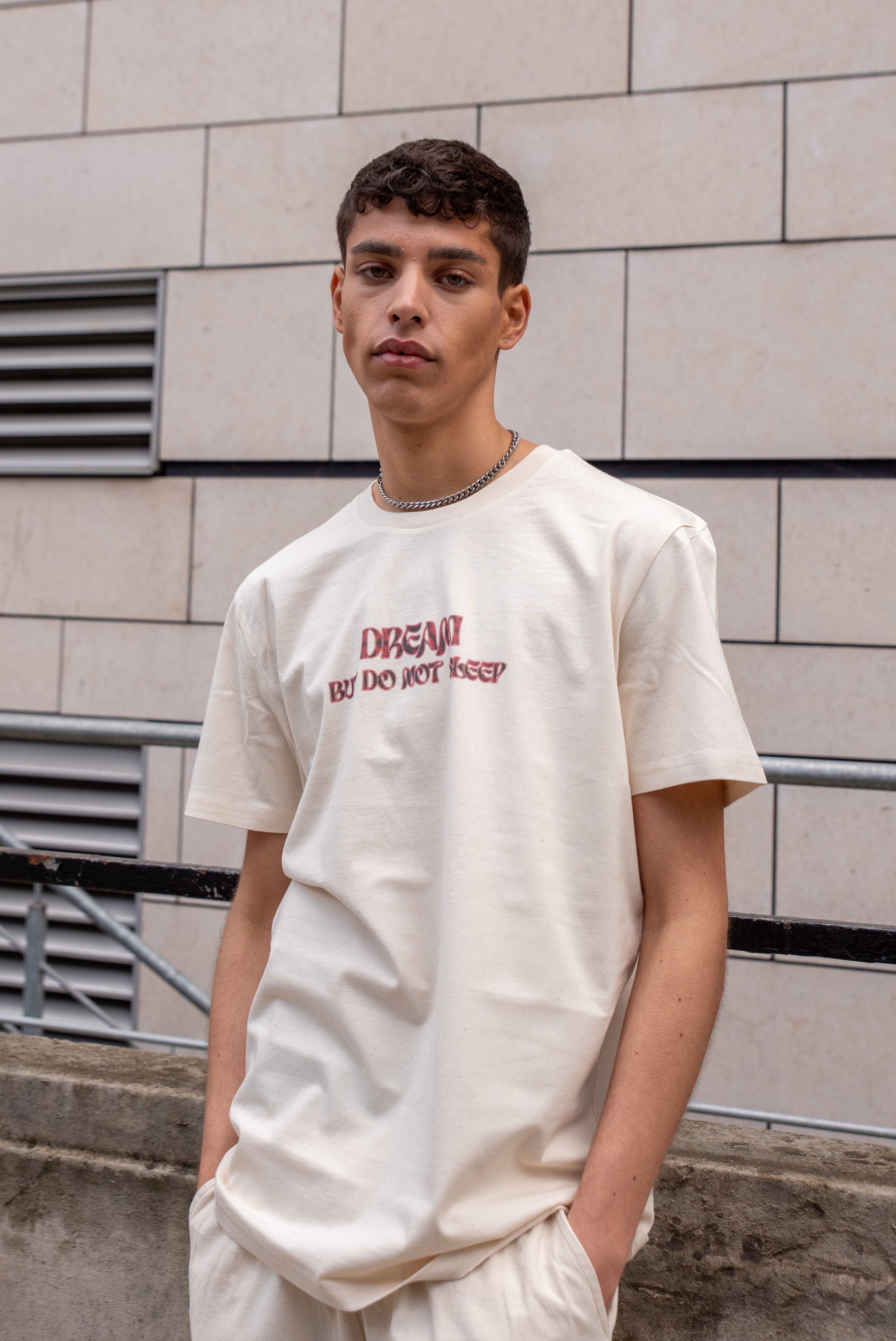Short Sleeved T-shirt in Natural With Cursive Logo Print