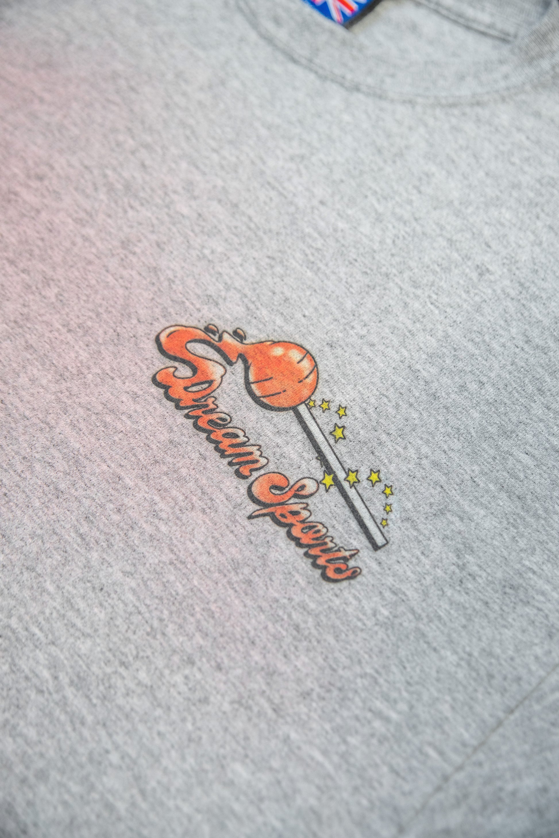Short Sleeved T-Shirt in Heather Grey with Lollipop Print