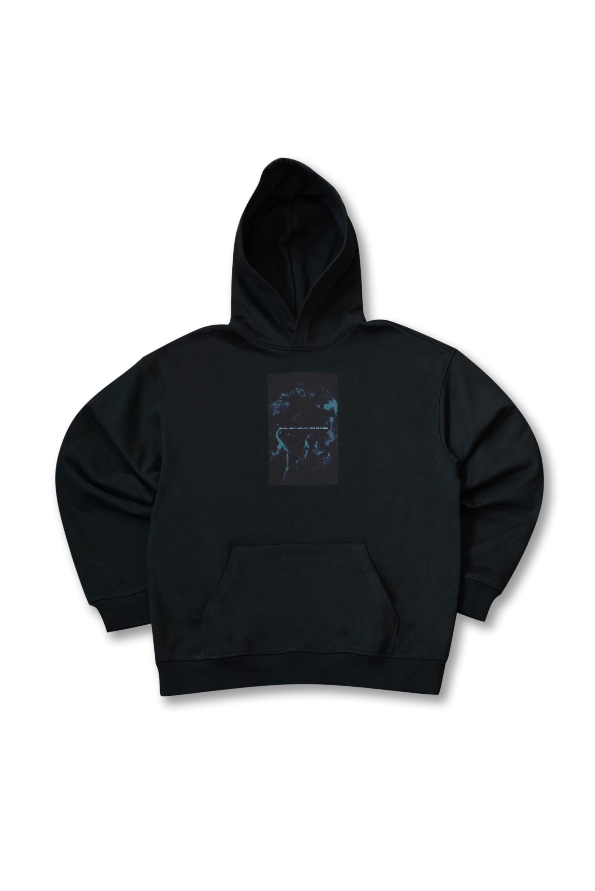 Premium Hoodie in Black Shuffling Through The Cosmos