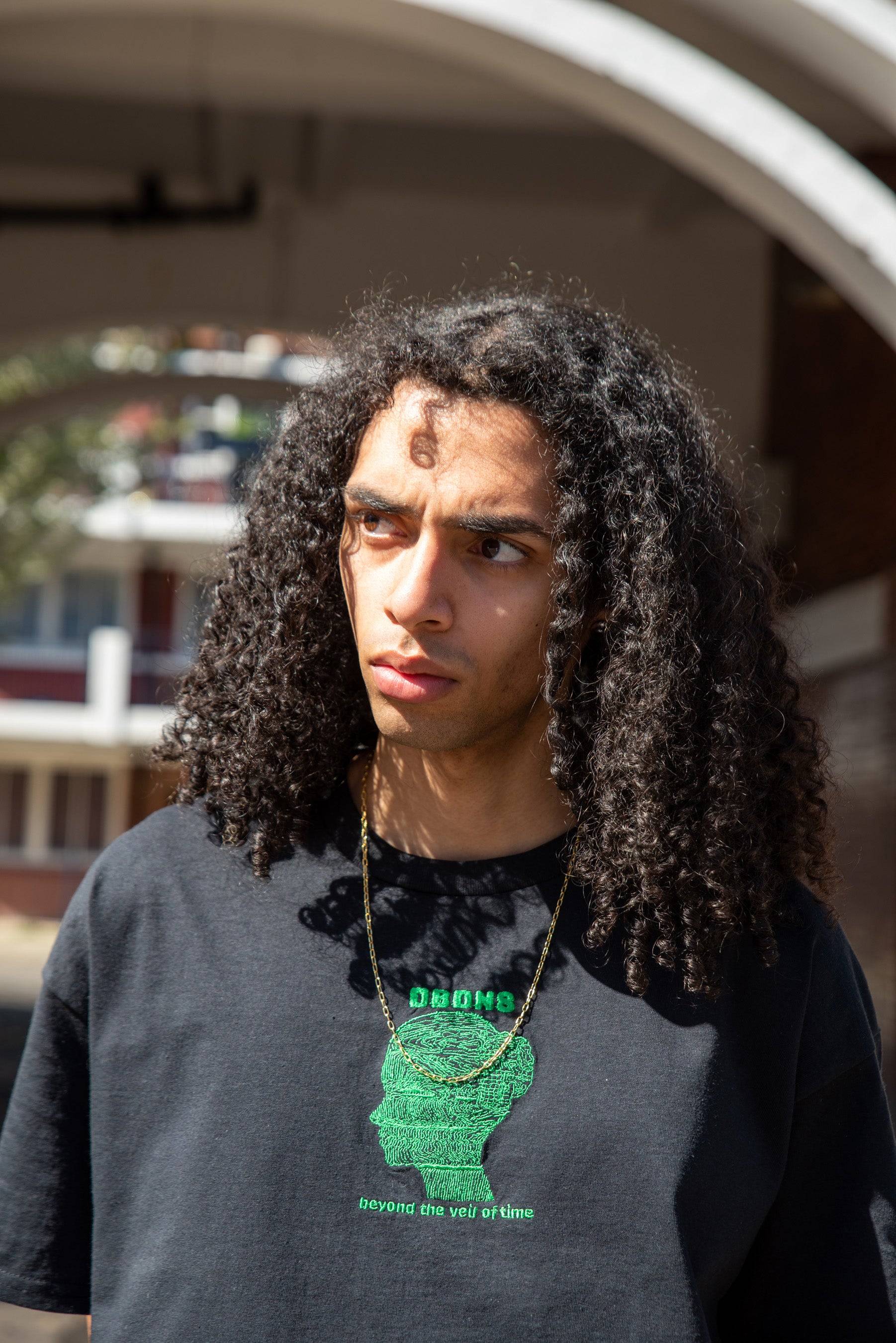 Short Sleeved T-shirt in Black with Beyond The Veil Of Time Embroidery