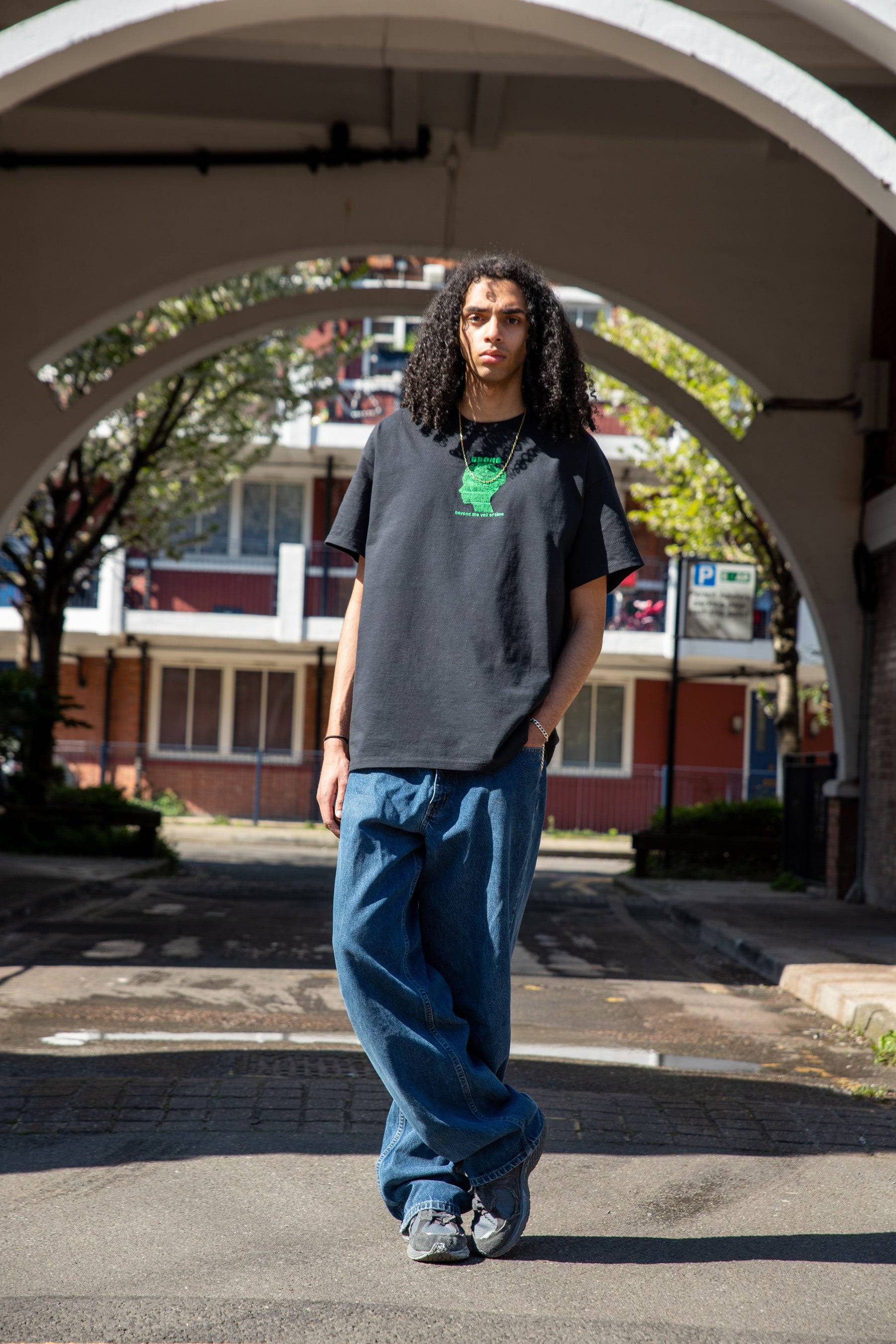 • Model is 6ft1" (185cm) and wearing a size x-large for an oversized fit