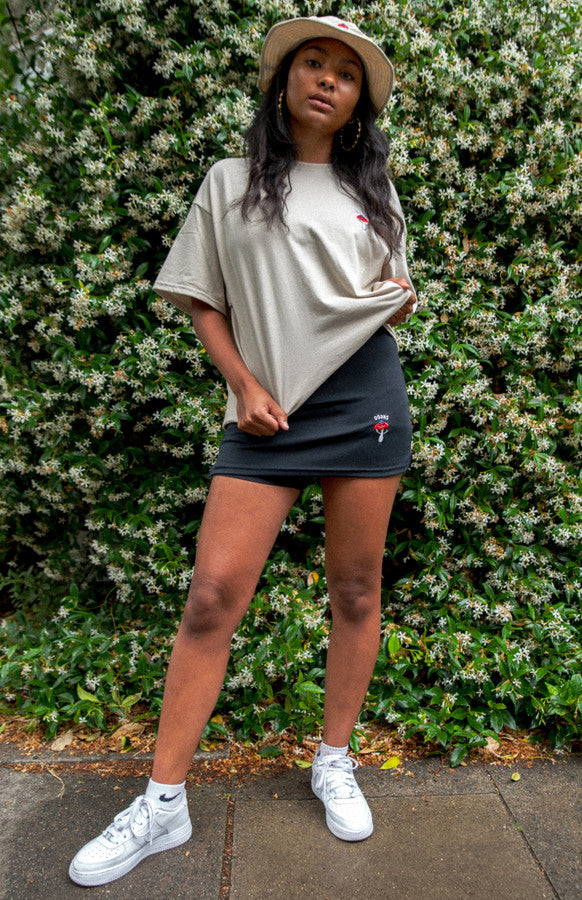 Following up on all of our Bro Shroom pieces we present the Bro Shroom embroidered Skort in Black! Raving into your summer 2020.