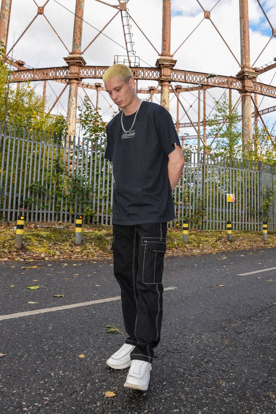T-Shirt in Black with DBDNS Futuristic Logo Embroidery